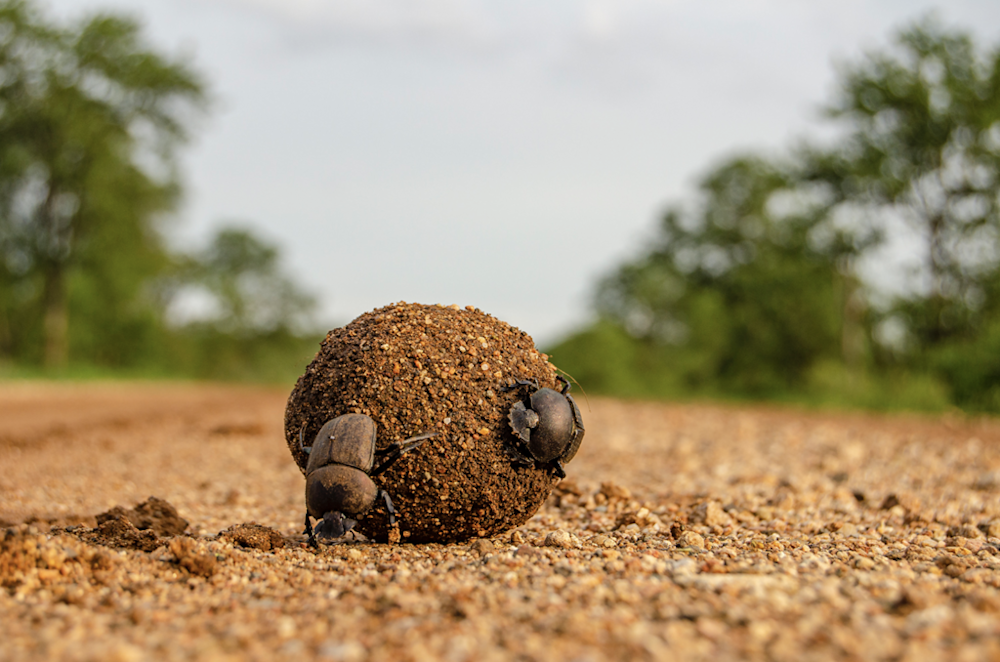 I had an amazing time watching dung beetles excavate a bolus of elephant dung. (Researchers in Kenya once counted 16 000 dung beetles, in two hours, in one pile of elephant droppings; anyway, I digress.) What was fascinating was watching this one huge dung beetle that had his female and had already started rolling his ball away from the dung pile to go and bury it. Almost immediately he was challenged by another male and the ferocious fight that ensued was just unreal. I am glad to report that no beetle was injured and our dung beetle managed to fend off his attacker.