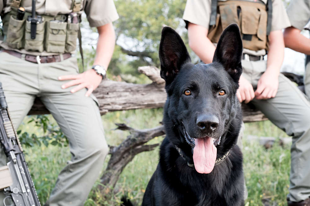 Not only do the APU teams have to go through rigorous training, but they, along with their dogs, must withstand extreme weather conditions – operating long hours on foot in extreme heat and humidity, and risk dangerous animal encounters and armed poachers in their efforts to protect the reserve’s endangered wildlife.