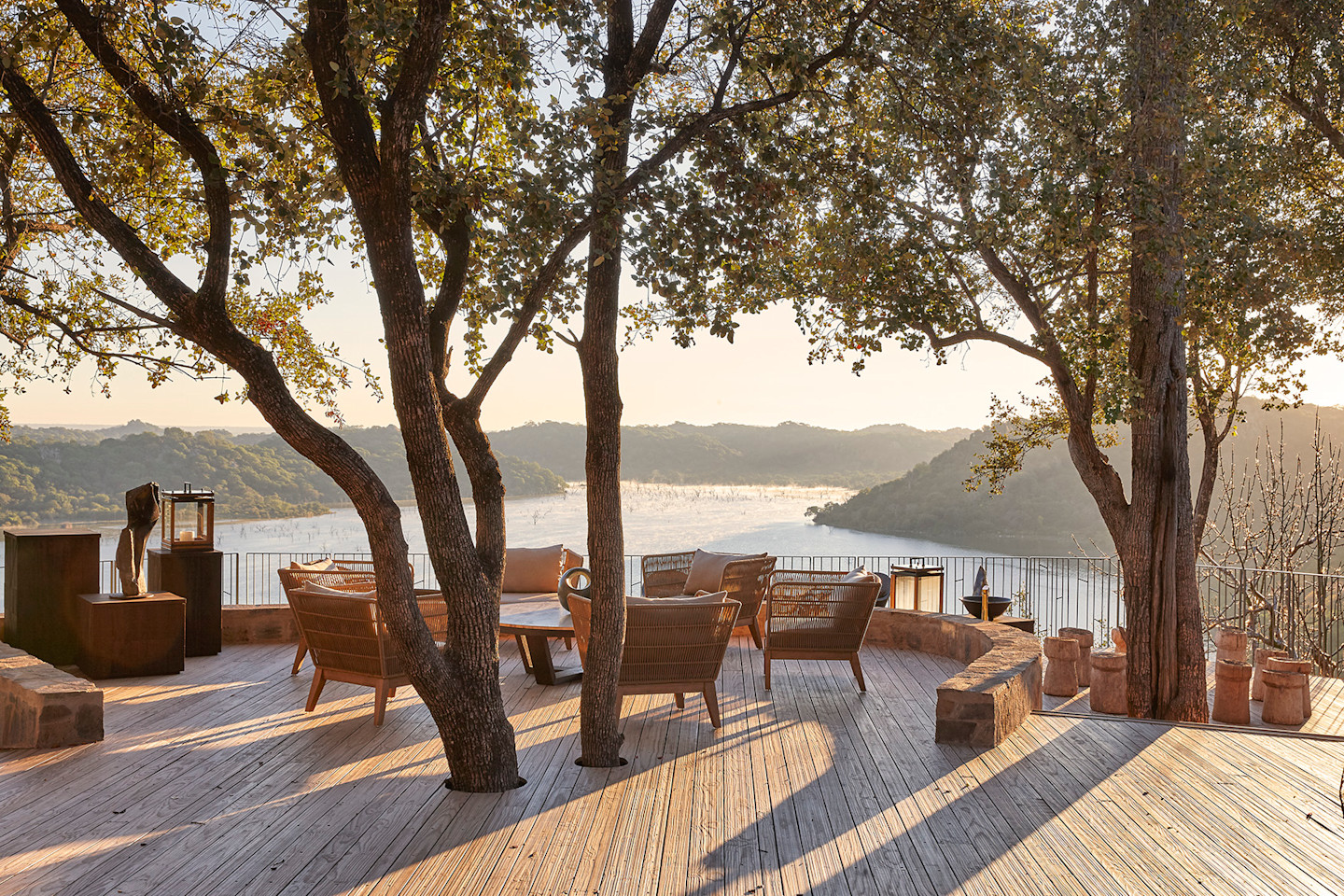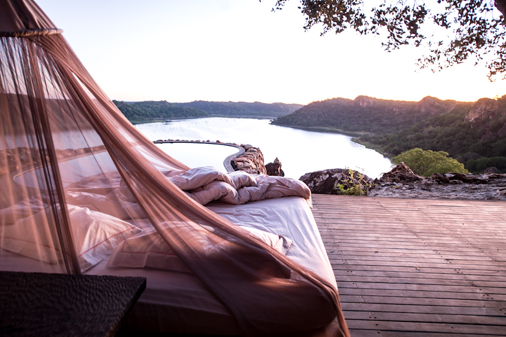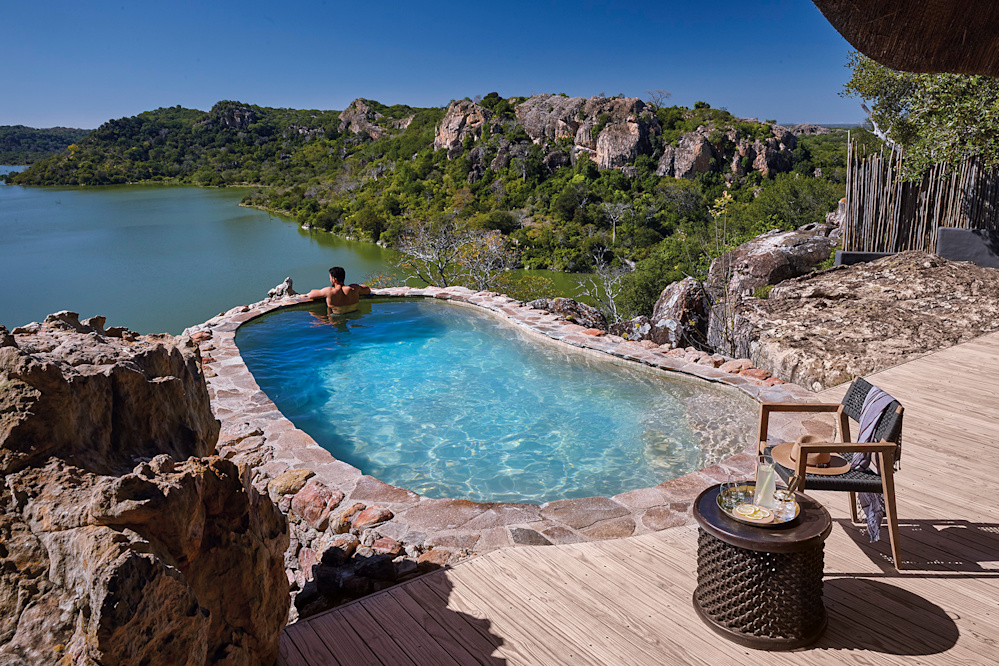 Situated high up on a sandstone ridge overlooking the Malilangwe Dam, Singita Pamushana is an intimate lodge made up of only eight suites, each with a private plunge pool, and panoramic views of the breathtaking landscape. The lodge itself, built as a series of interlinked platforms, offers scenic spaces to enjoy the scenery and connect to the landscape – expansive decks and a clifftop self-help bar deli constantly connect guests with their surroundings and allow for relaxed, casual dining, storytelling and soaking in the atmosphere in a picturesque part of Africa.