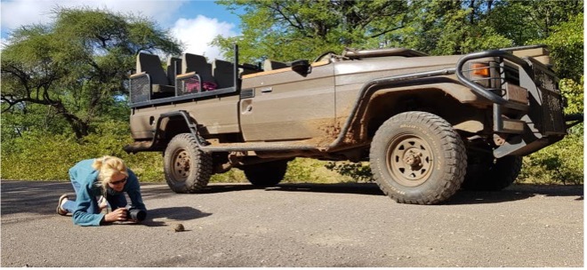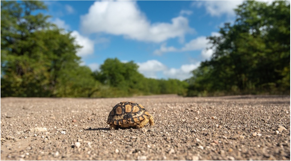 We spotted this tiny tortoise crossing the same main thoroughfare, and it wasn’t much larger than a pebble. I decided to move it to safety, after photographing it, and was glad I did because moments later a larger tanker vehicle on its way to Gonarezhou came barrelling down this, the only public road in ourreserve.