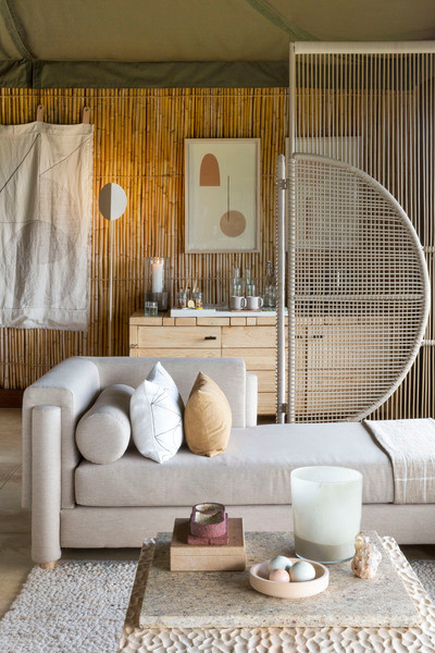 While neutral, there’s nothing staid or standard about the spaces at Singita Faru Faru. This is considered, contemporary design that’s grounded in Africa, but inspired by influences from all over the world. Sophisticated and current, but timeless, a balance has been struck between energetic, clean-lined graphic motifs and soft, organic shapes inspired by the landscape.