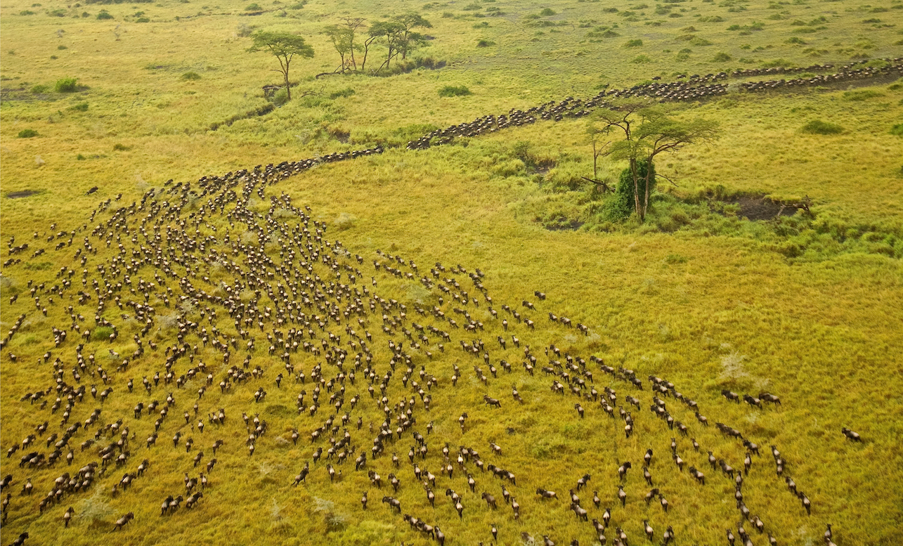 The annual Great Migration sees hundreds of thousands of wildebeest traverse the plains, risking certain danger, as they follow better grazing and water
