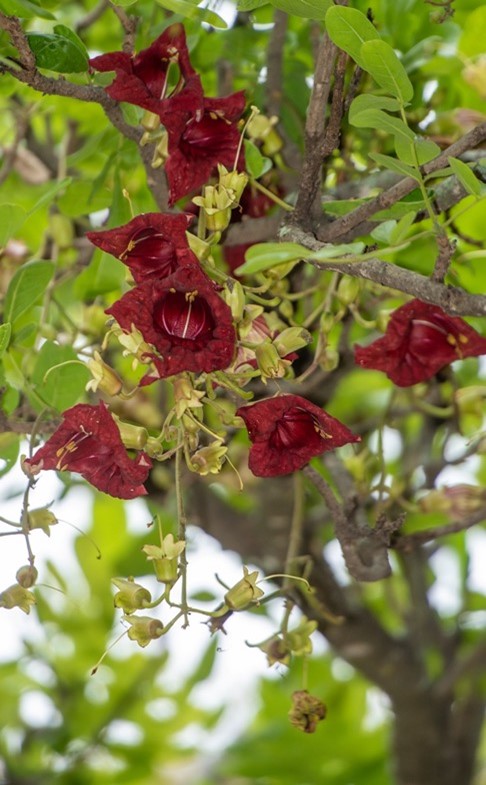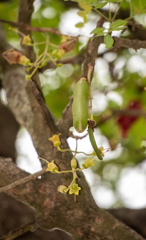 These trumpet-shaped flowers couldn’t be any redder against their bright green backdrop, and they spurred me on to remind myself about of the quotes I’d heard about red and green in art class. The flowers hang down from branches on long flexible stems and, once pollinated, develop into the huge sausage-shaped fruit of the tree. They are one of the first trees to flower in this area and a joyous sign of spring. The flowers are velvety on the inside and full of nectar, attracting a host of insects and birds. The strong stem of each flower makes an ideal foothold for birds. I picked up some of the fallen flowers but they had very little scent – apparently their scent is most notable at night indicating that they are adapted to pollination by bats, which visit them for pollen and nectar. Monkeys sink their small faces deep into the flowers to drink the nectar, and I saw a magnificent kudu as well as some impala, bushbuck and duiker eating the fallen flowers.