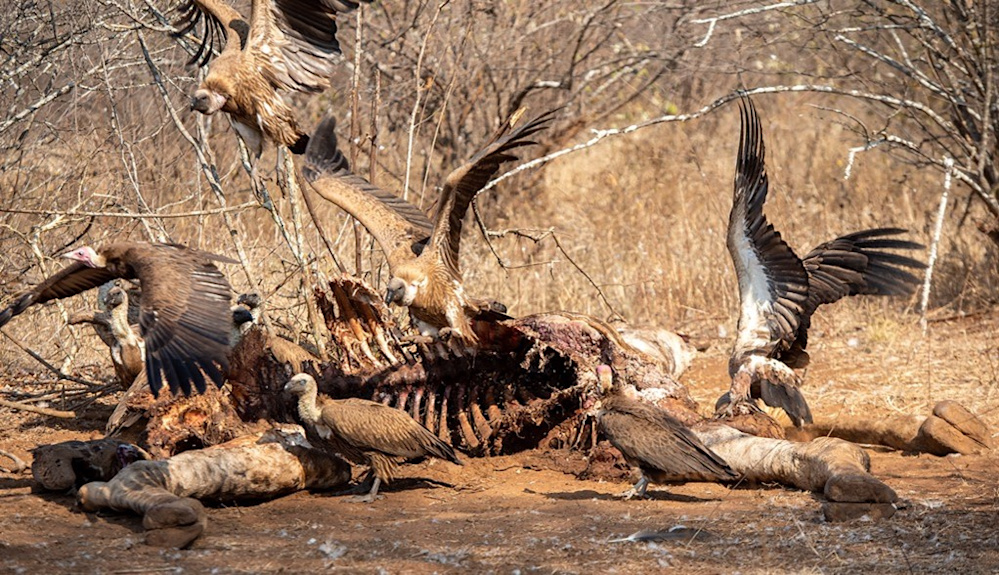 The reasons for the decline are numerous and complex. Poachers kill great numbers of vultures by intentionally lacing poached animal carcasses with poison. Vultures are also vulnerable to secondary poisoning by the anti-inflammatory veterinary drug Diclofenac, or unintentional poisoning through the ingestion of fragments of lead ammunition. Other threats include electrocution and/or collisions with power infrastructure, declining food availability, habitat loss and harvesting for belief-based use.
