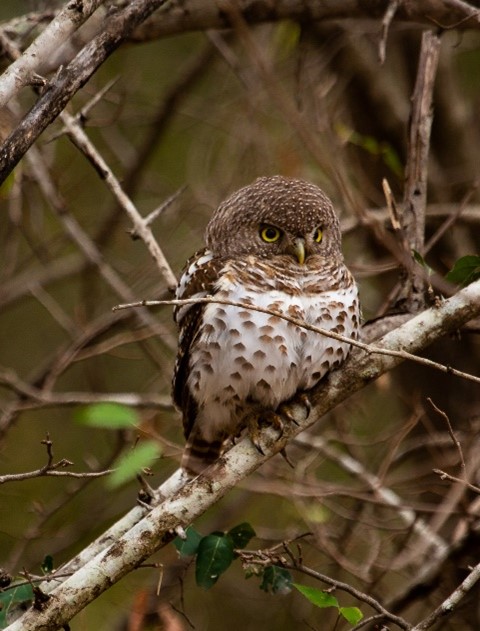 The pearl-spotted owlet, is a great bird to listen out for as the pair sings in duet with one another, usually at dusk and dawn. Their unmistakable call stays in the memory of even the most novice birder. The “false eyes” on the back of the head, and streaked chest, are diagnostic for this species.