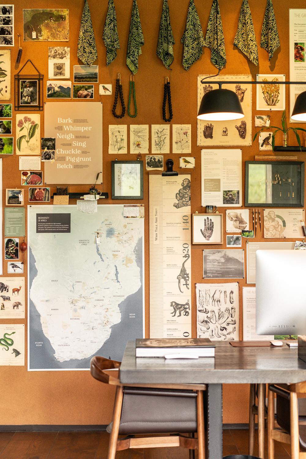 Our dedicated Conservation Room tells the story of the primary purpose of this property. This interactive educational space is managed by Singita’s specialist conservationists and provides a unique perspective on endangered mountain gorillas and their habitat, and serves to celebrate and honour this species that calls the neighbouring forests home. A conservation wall – displaying the gorilla family trees and history, photographs, graphs, diagrams and maps, and a display of Bob Campbell artifacts housed in this room – all paint a picture of the rich history of the region's wildlife. By offering an educational element, we hope to inform and inspire in such a way that impacts on the future success of conservation efforts.