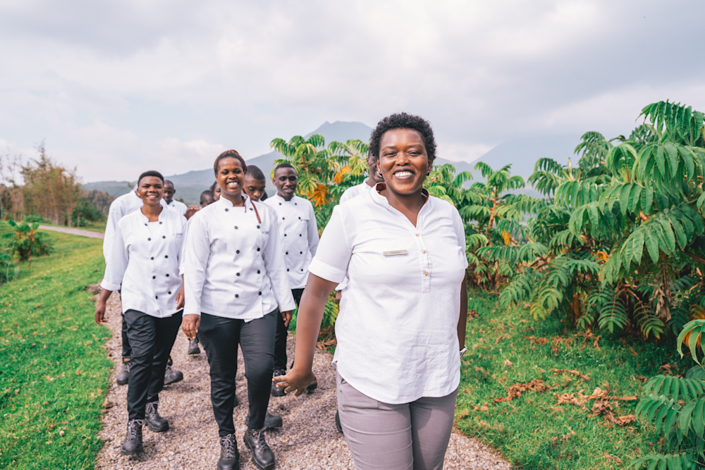 From a bold but sympathetic design by Sally Tsiliyiannis of GAPP Architects and warm but striking interiors by Geordi de Sousa Costa (of our longtime design partners Cecile & Boyd), to conservation and community officer Claudine Tuyishime (in charge of the reforestation efforts, as well as various other facets), Angelique Iraguha in the kitchen and Donah Kabaganwa, who runs our beautiful Arakabo Nursery, women are represented across the board alongside many others. Heading up the team with her gentle and insightful guidance is Lydia Nzayo, the General Manager.