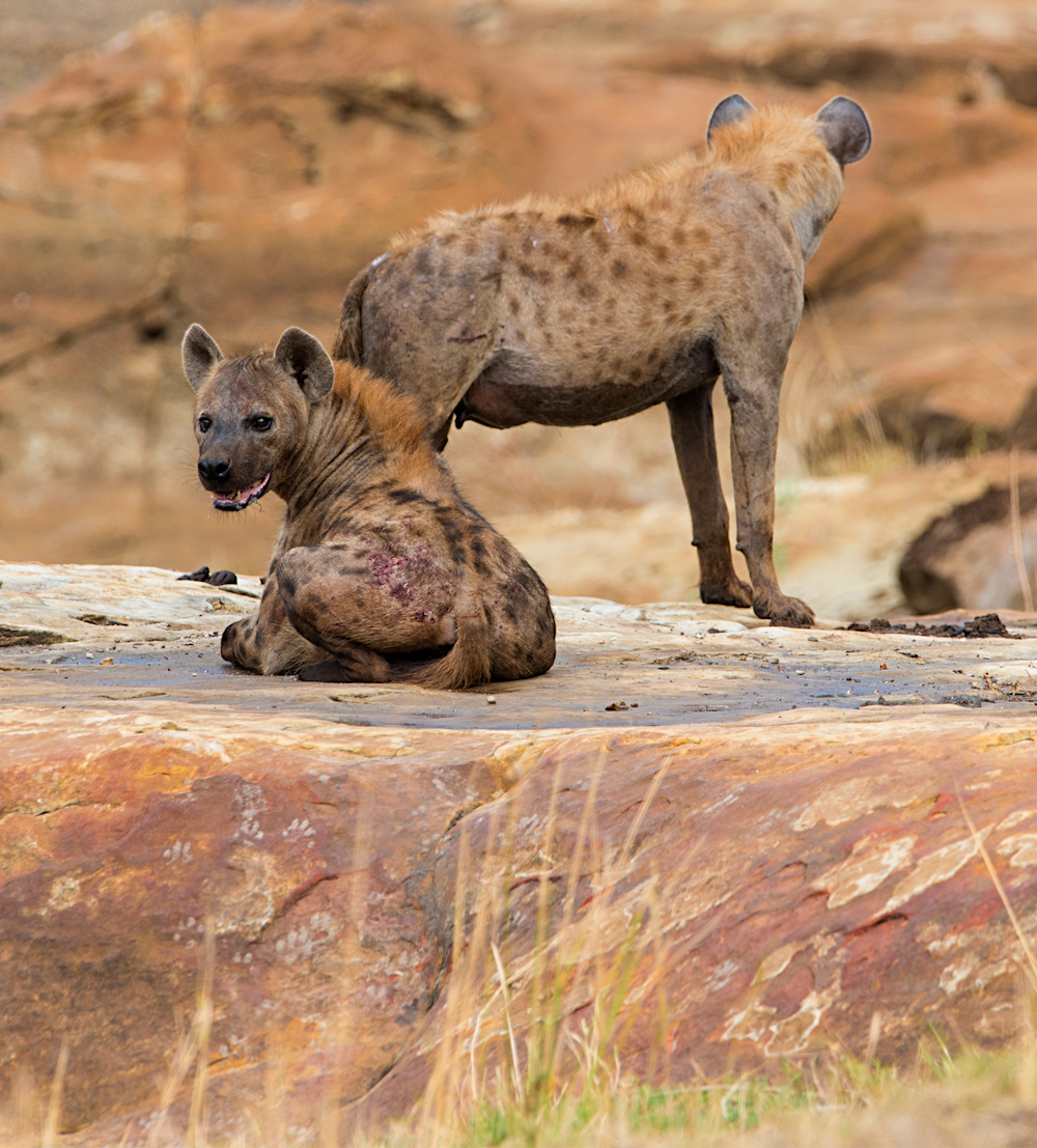 - Spotted hyenas have been seen regularly, especially when they are determinedly on the trail of African wild dogs.
