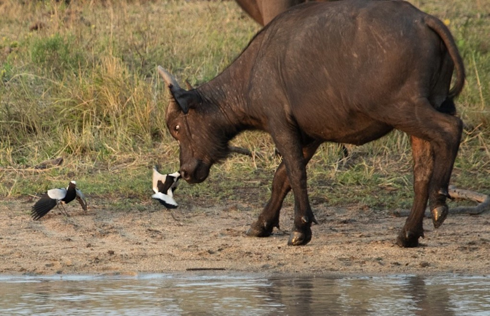 The herd was a hundred strong, and thirsty. The lapwings had waited all year, preparing themselves and their nesting areas for breeding season. Nothing was going to disturb them. As the herd approached we could hear the distinctive call of the blacksmith lapwings, “twing, twing, twing,” like that of a blacksmith forging iron. The call got louder and more frequent as the large bovines got closer. A warning to them to stay away and give them space.
