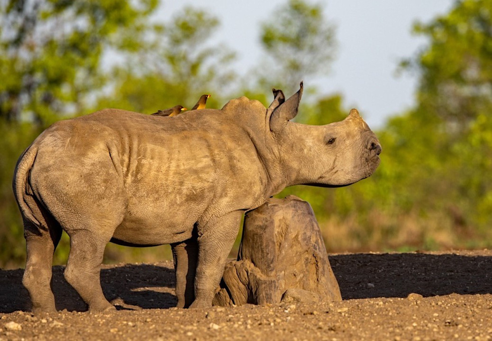 There are a few white rhino mothers with young calves drinking at a pan regularly. They are very protective of the babies and will react aggressively to any other male rhino that comes near them. Watching the youngsters interact with others and the big wide world is an absolute delight.