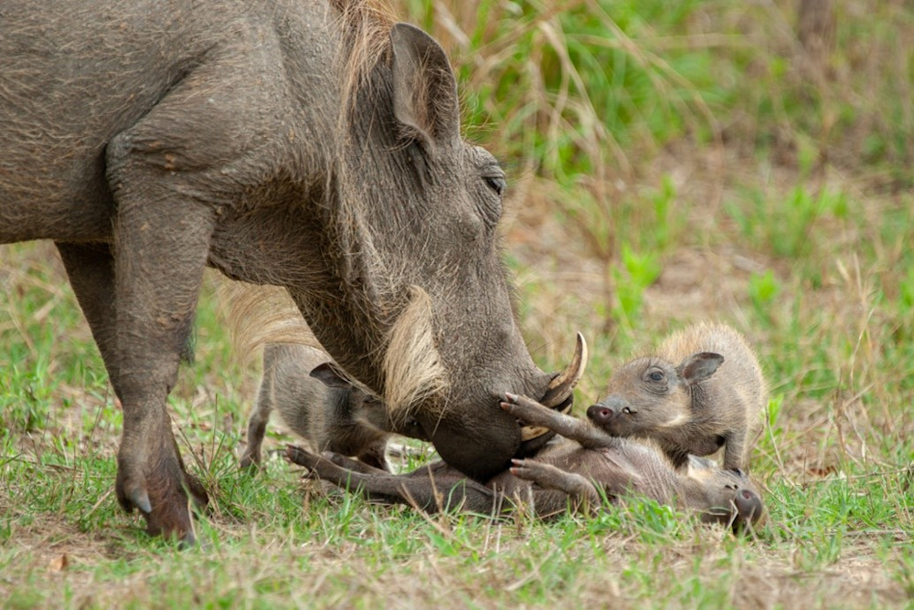 But despite the odds against them, warthog populations still manage to grow, with a couple of piglets surviving each season, and staying with their mothers for between one to two years, until she has her next litter. Females often stay with their mothers, while young males will move on, often associating with other males in bachelor groups, where they have safety in numbers and peers to wrestle and fight with, developing the skills which will be needed to defend their breeding rights when they are adults. Warthog are sexually mature at two years old, but many males will take longer to have the opportunity to breed as they need to fight for the privilege to pass on their genes, to a new generation of piglets to face the world.