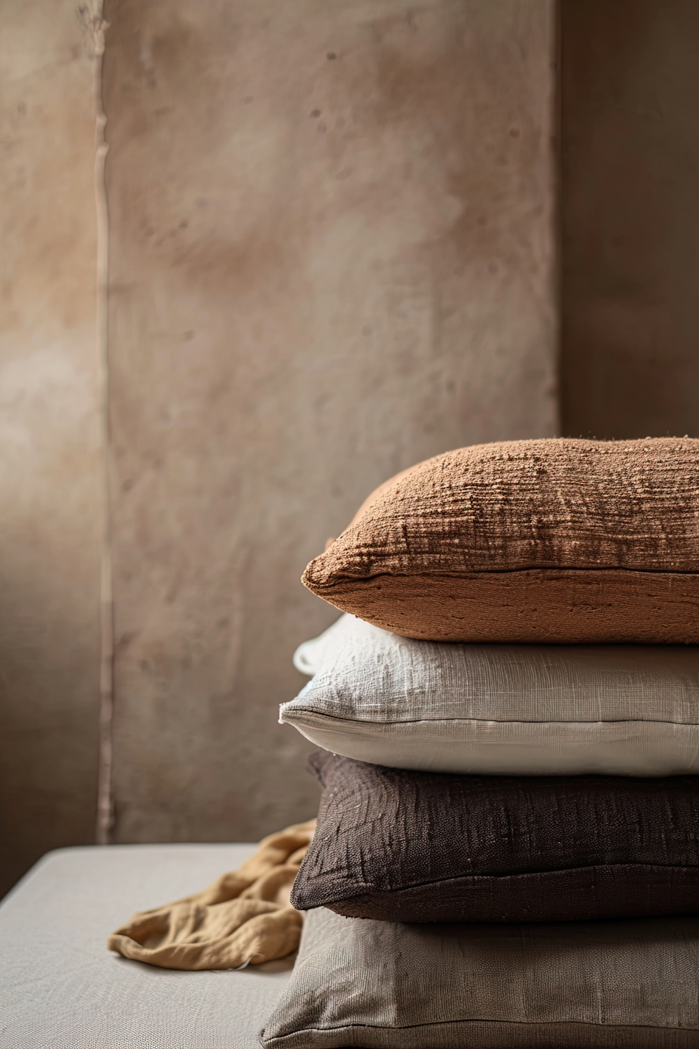 Natural materials and layered textured contribute to the calming and uncluttered new scheme
