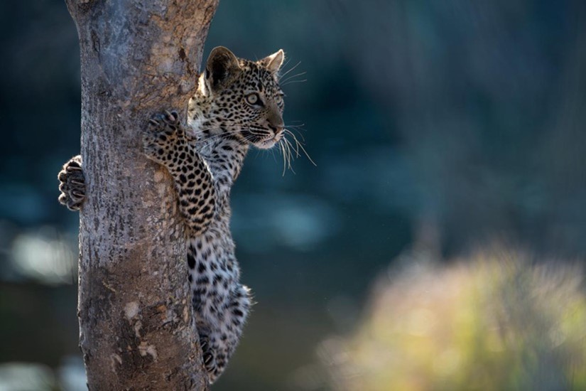 As they continue to grow, so too does their confidence as we start to see them more regularly as they move along with their mother, learning from her, as her previous litter has done. Learning about the importance of location, not only for safety but also for hunting. With the water sources becoming more scarce as we near the end of winter, our dry season, location becomes everything. At a prominent drinking point, where the slopes of the banks are gradual and open and the rocky riverbed forms a shallow crossing point, animals feel more comfortable to drink with better visibility to watch for crocodiles lurking in the water. These drinking spots are frequented by antelope and elephant and even the leopard and lion, all feeling more secure. But the traffic in and out of these sections of river became the focus of this skilled hunter.