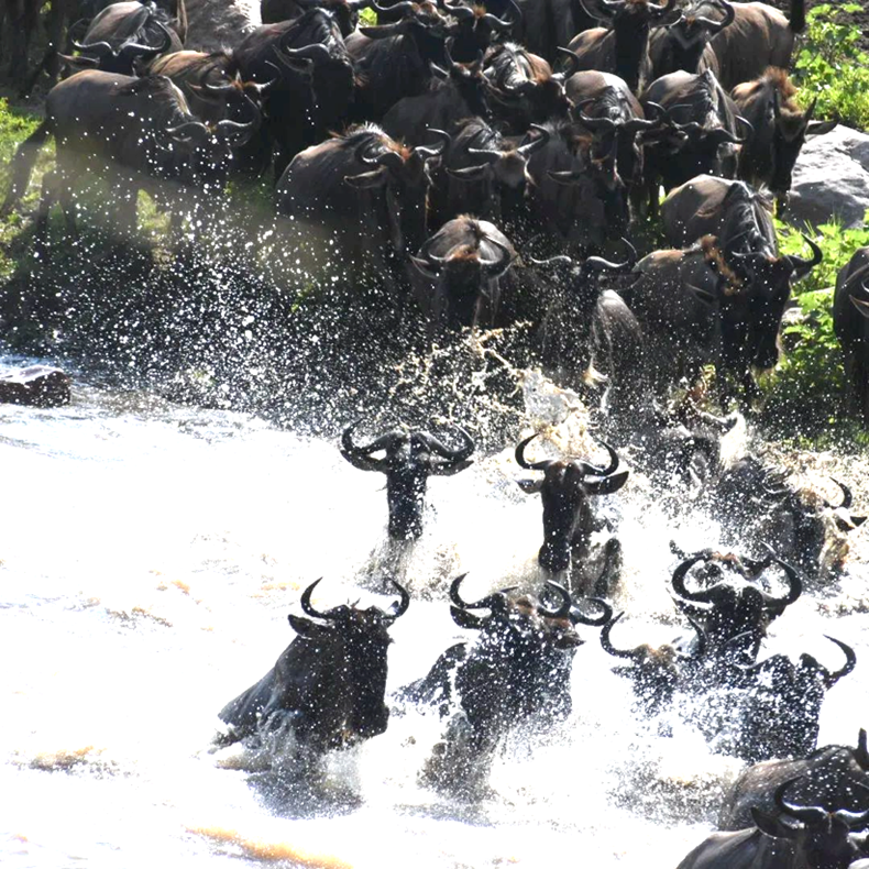 Wildebeest crossings along Mara River happened almost every day, and few times they were witnessed crossing right in front of Lamai camp.