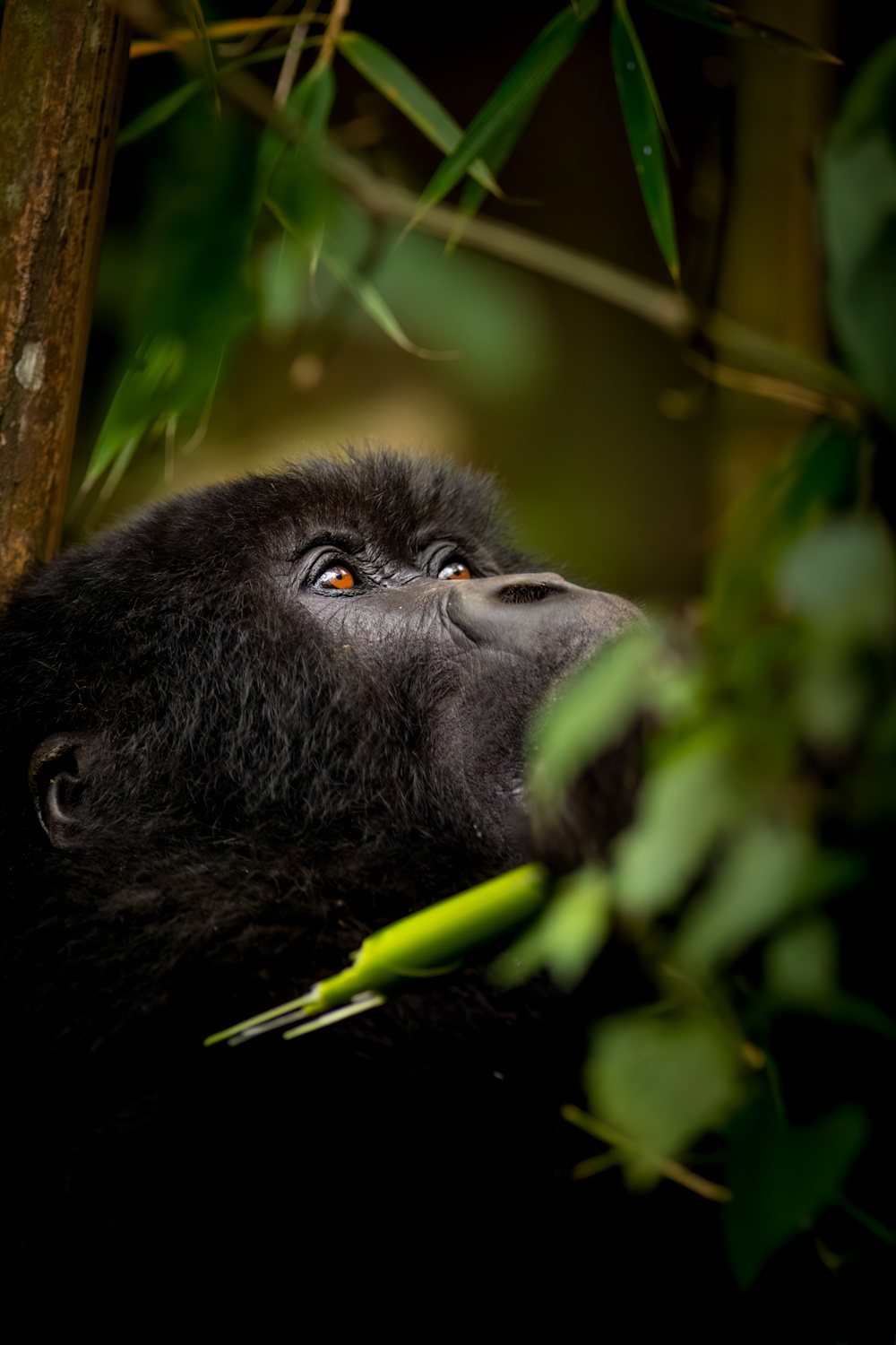 ISO: Use a higher ISO setting (800-1600 or higher) to accommodate low-light conditions in the forest. There will be an occasion that a gorilla family moves into dappled light and then it will become much brighter. This is when you reduce your ISO and ensure that your shutter speed is adequate to your subject’s movement.