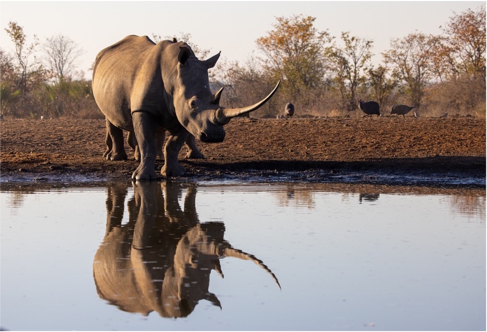 - The hide is at its zenith right now. This will change when the rains come. We’ve had bull elephants visit, buffalo and white rhino drinking together. There was one afternoon that attracted multiple white rhinos, six wild dogs, two lions, an elephant bull, and five buffalo bulls. A morning session resulted in multiple white rhinos, zebras, kudu bulls and cows, two herds of wildebeest, herds of impala, eland, a jackal, a slender mongoose and a sable bull. In addition 22 species of birds were seen, the highlight being a secretarybird.