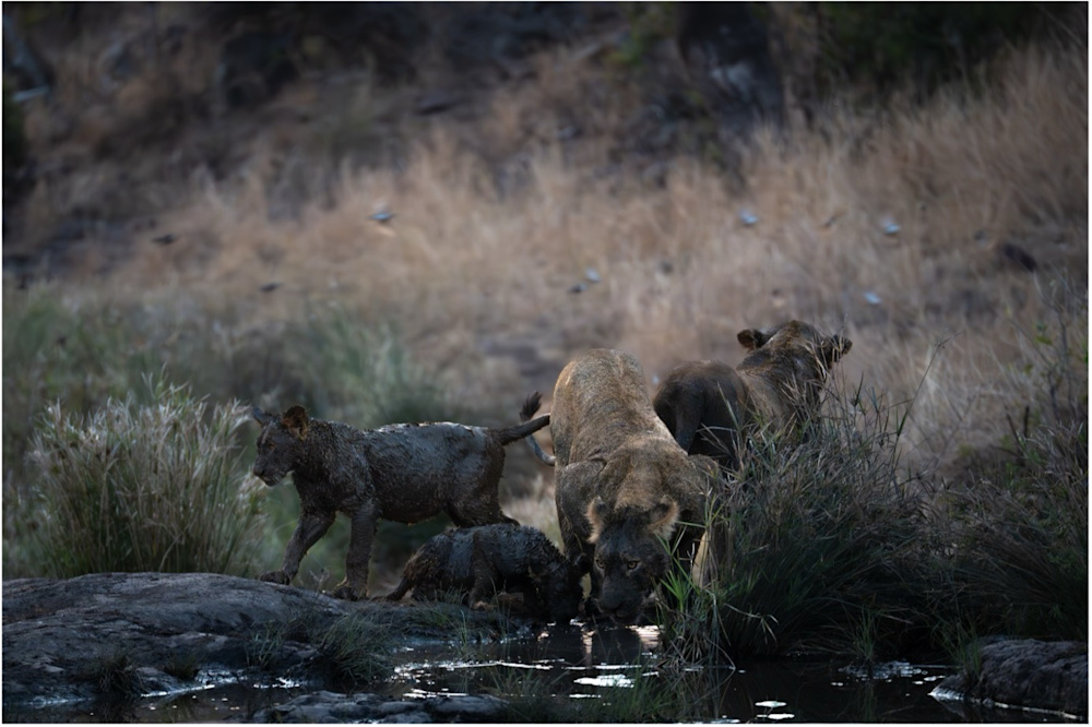 - Nhlanguleni’s previous cub, Nungu, has been moving through her mother’s territory, but most sightings of her are around the last two water sources, Xinenene Poort and Pony Pan.