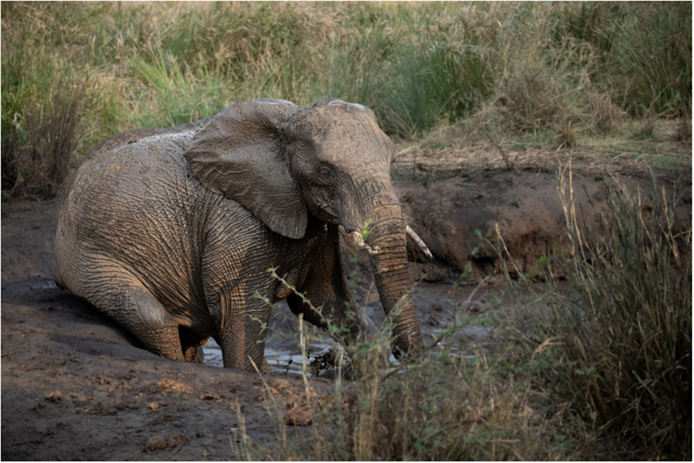 - On the hottest afternoons, there have been hundreds of elephants along the N’wanetsi River all the way from the lodges in the south up to where the river bends west out of our concession. There are old, wise females and boisterous young males flaring their ears and challenging us with their bravado (until you get too close, then they lift their tail and run back to mom). Young infants scurry around underneath their moms’ bellies and many individuals are in the river itself, feeding on the last sedges.