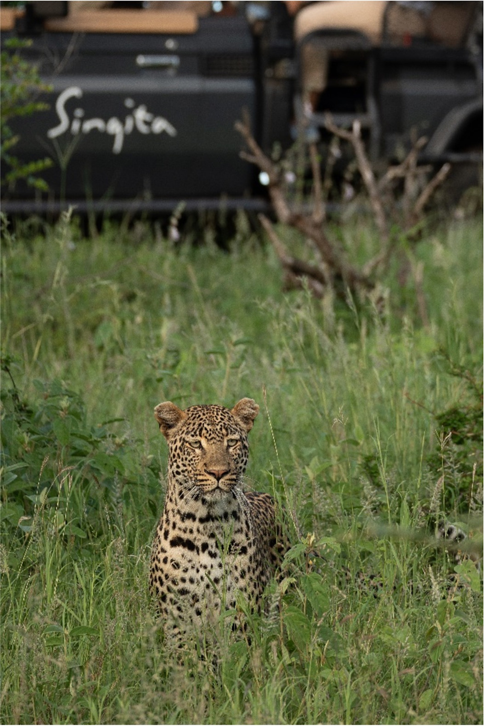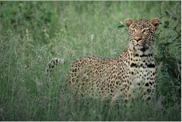 - At the beginning of the month, three male leopards found themselves a bit too close for comfort. It started with Mbiri-biri, who was spotted moving north, seemingly following the scent trail of another leopard, stopping to scent mark and scratch his hind paws through the dirt. He descended into a drainage line and we lost sight of him. Deciding to rather loop ahead, anticipating where he might exit the drainage, we came upon another male leopard! At the base of a large leadwood tree was the Zamani male, his golden amber eyes and scared nose unmistakeable. After a minute, we spotted a third male up in the leadwood. He was smaller, and so we thought perhaps it was the Massia male, a younger male, named after the Shangaan clan that used to live in that area. He climbed higher into the leadwood, while Zamani, who initially looked chuffed with himself, was now straining his neck to see Mbiri-biri, who had come into site on the horizon. Mbiri-biri approached proudly, and the two squared off. Taking the opportunity, the Massia male jumped out the leadwood and ran in the opposite direction. The two larger males, now walking parallel with each other began to pick up the pace, until they were almost sprinting side by side. With drool spewing out of their mouths, we thought this was it, there was going to be a clash. We lost sight of them in the drainage, but as they emerged on the other side, they increased the distance between them and both lay in the shade of an apple leaf tree about 50 metres away from each other.