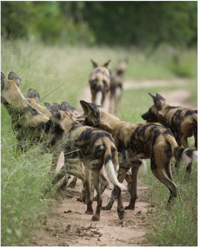 After about an hour, the alpha stirred. Instantly, the energy shifted - the pack snapped awake, excitement rippling through their ranks. Within moments, they took off, running down the road with us in hot pursuit. For the next three kilometres, we followed their swift, synchronized movements, knowing they were on the hunt.
