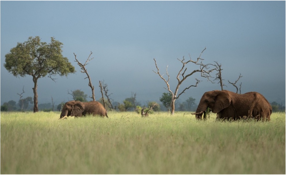 - The current height of the grass is perfect for the elephants. Their trunks curl around clumps, pulling the grass with the sound of blades sliding out of their sheaths as they feed slowly in a steady direction.