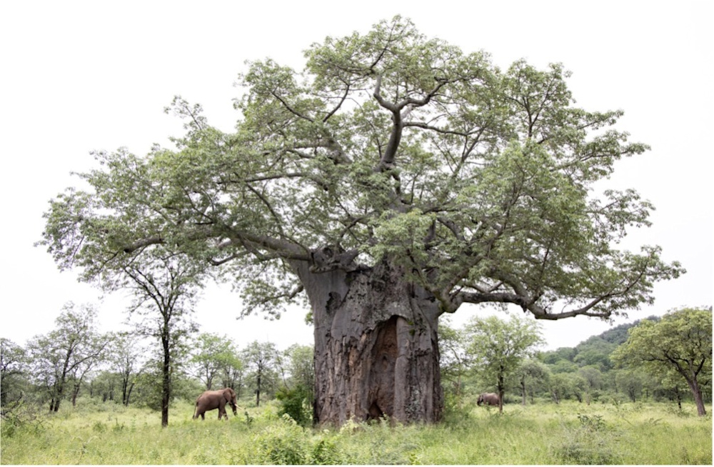 We parked on the side of Pamushana Access Road to watch them. Close up they were enormous, the meadow around them only accentuating their size. Yet, when they moved closer to a large marula tree, their size became more relative. The marula, with its split trunk and over-arching canopy, stood as an impressive monument of nature. But the true perspective-shifting moment came when they wandered near an ancient baobab (the one with a big arch in its trunk that I refer to as the Archbishop Baobab). Its towering presence made the elephants look diminutive. Seeing these giants beneath a giant, where the elephants' stature was outweighed by the deep-rooted endurance of the land’s oldest sentinel was truly awesome.