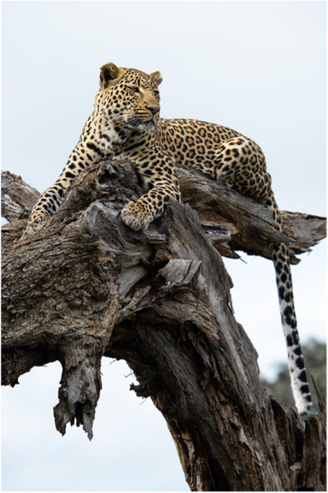 - The Dumbana youngsters (now almost 17 months old) spent a few days playing in the small guarri-bushes and long grass, crouching low before ambushing one another. Their mother is leaving them alone for longer periods now, enabling them to slowly gain more independence and confidence in their abilities. The young, energetic pair have dominated our leopard sightings this month. The female subadult (2:3) was stalking a Swainson’s spurfowl one afternoon when it saw her and flew dramatically into a tall knob-thorn tree nearby. She casually strolled to the base and leapt up, climbing almost to the thinnest branches, determined to catch the bird. Just as we thought she was about to learn a lesson on which branches she could and could not climb, the spurfowl took off, and she quickly slid back down to a more suitable fork in the tree. After methodically scanning the grass below, she carefully descended the tree. We thought the chase was over - until she cocked her ears, crouched, and leopard-crawled into the long grass. This wasn’t the end for her. With the sun setting, we decided to leave her, allowing the opportunity for her to practice her hunting skills in the cover of darkness.