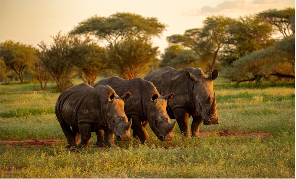 - There have been some picturesque sightings of white rhinos, often with them grazing close to the game-viewers in a relaxed manner.