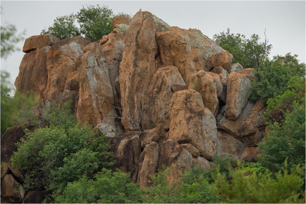The ridges themselves are dotted with distinctive trees such as the Lebombo ironwood, white kirkia , and large-leaved rock figs—species uniquely suited to the rocky terrain. The large-leaved rock fig, in particular, stands out as a “rock splitter,” its roots prying apart crevices in the granophyre and rhyolite, contributing to the slow sculpting of the landscape. Along the lower slopes and gorges, where the ridges meet the basalt flatlands, a transition zone emerges, marked by knob-thorn, raisin bushes, leadwood trees and marulas. This gradient of habitats supports a surprising diversity of wildlife, despite the harsh conditions.