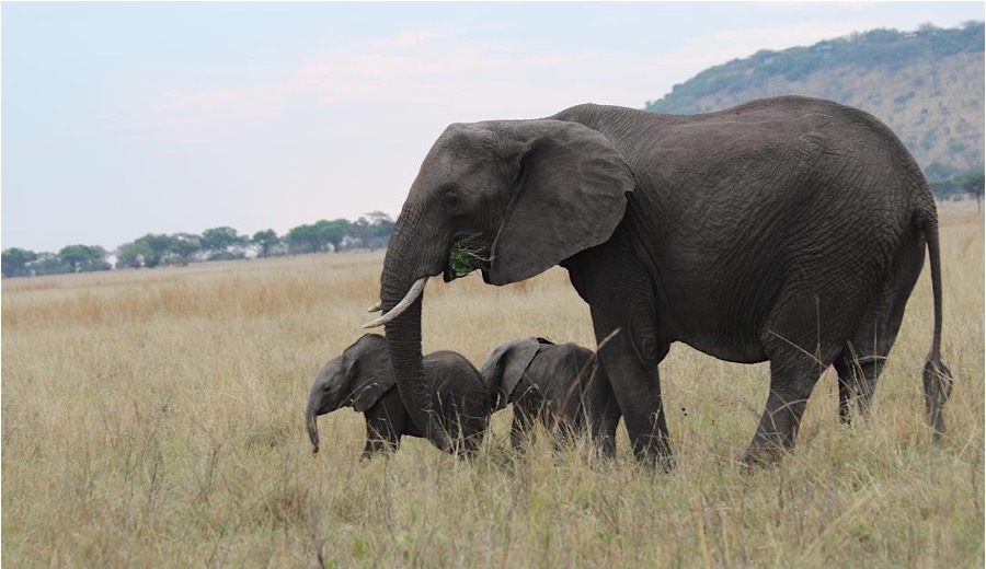 It was in the late evening on the vast Sasakwa Plains, with golden light spilling across the tall grass swaying gently in the breeze. Herds of zebra grazed in the distance, while a herd of elephants moved steadily through the open plain, their silhouettes framed against the warm glow of the setting sun. As we followed their slow, deliberate pace, one female drew particular attention. She was large and calm, moving with the steady confidence of a matriarch. But what made the sight unforgettable were the two tiny calves walking at her side, a pair of elephant twins, barely two months old.