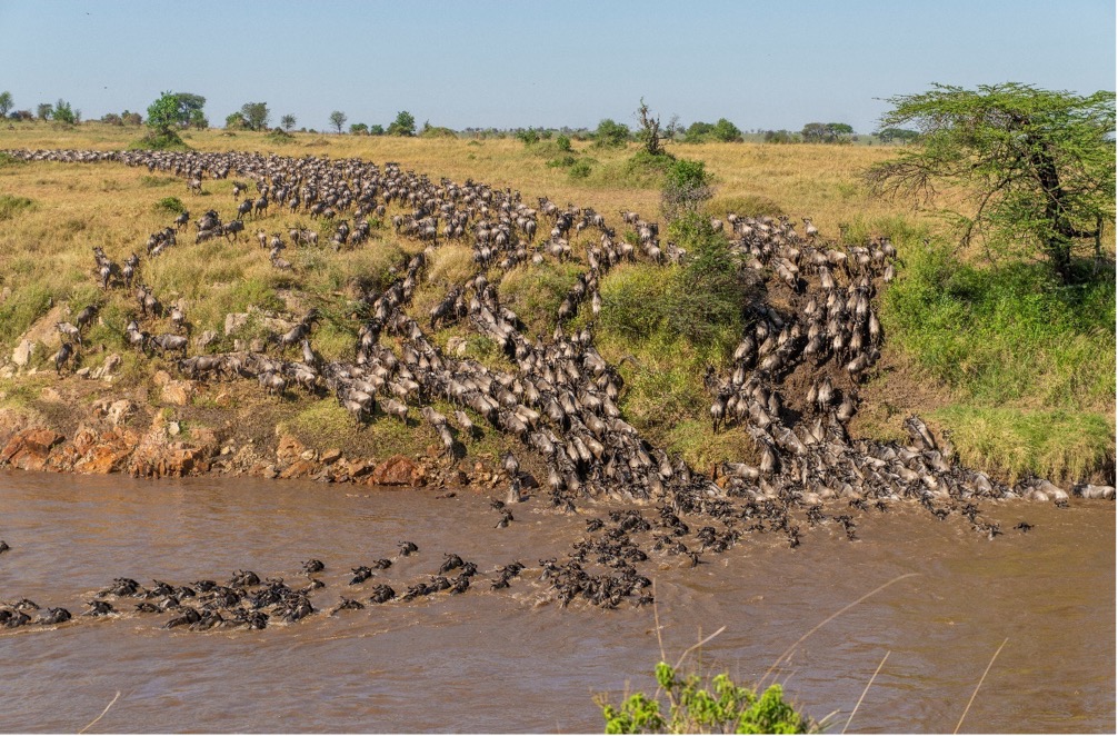 - Along the Grumeti River between Colobus Crossing, Pelican Pan, and the Triangle area another large herd was observed.