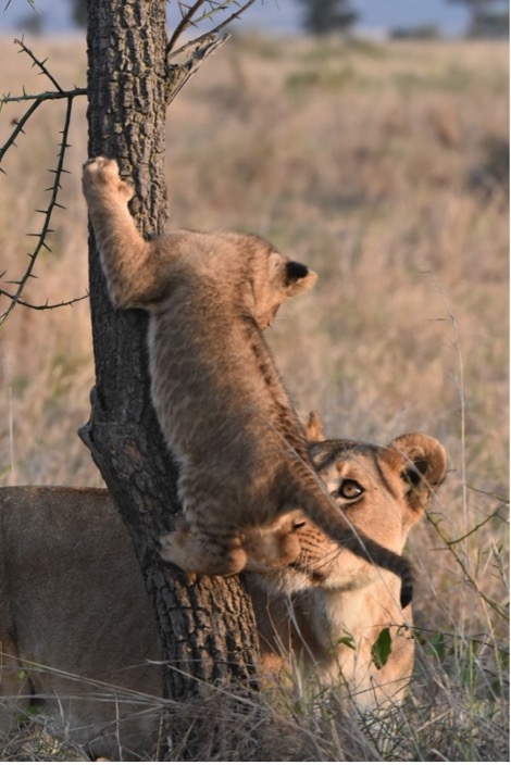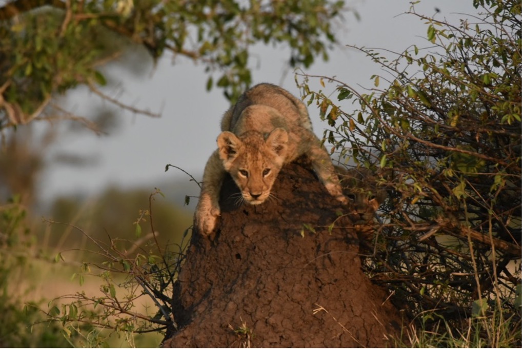 - One male was seen along Korongo la Minazi, in proximity to the mother with one cub. On one occasion, all three, mother, cub, and the male were observed together, exhibiting family-like behaviour.