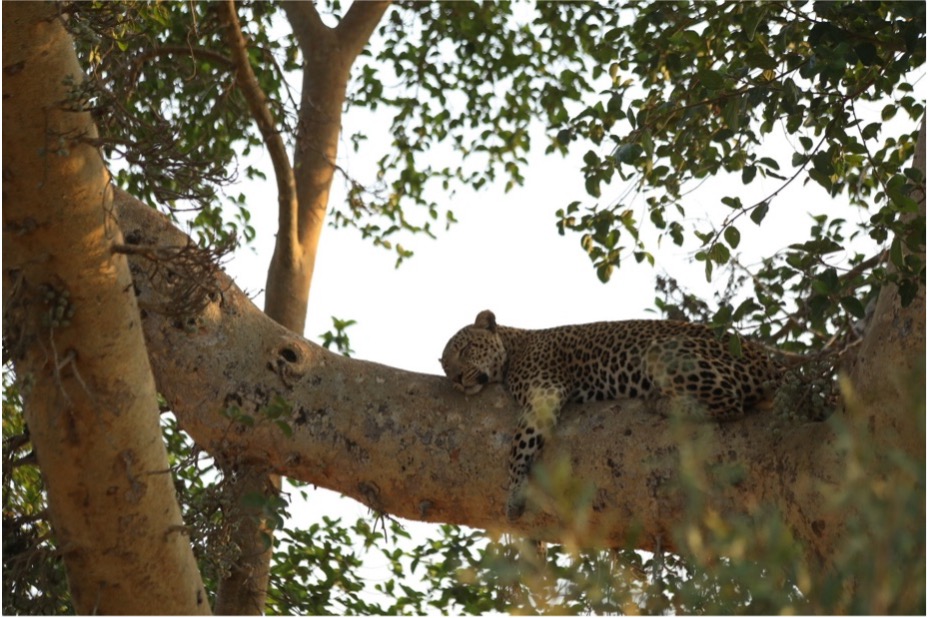 - Speaking of fig trees, Marc Bowes-Taylor finally lived his dream of seeing the Hlambela male in a massive sycamore fig tree, a tree that he has envisioned seeing a leopard in for many years! This sighting was extra special as a journey of about 12 giraffes crossed through the Sand River while the leopard slept above.