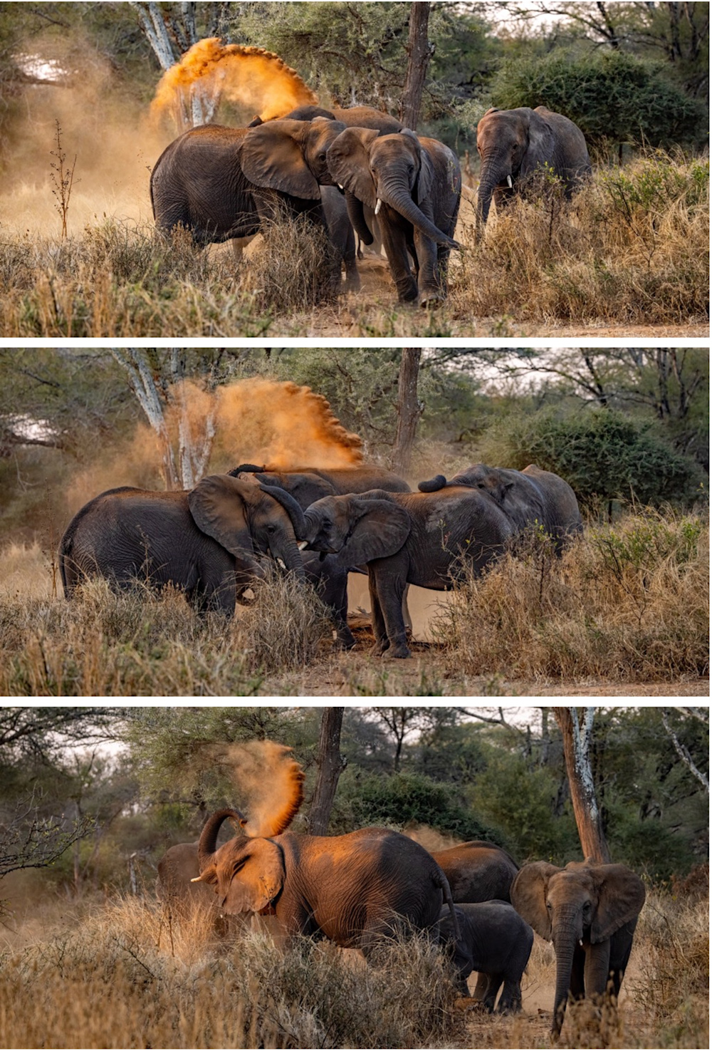 Dust is such a wonderful element for wildlife photography. It adds drama, depth, movement and atmosphere. Dust particles catch and scatter light, enhancing that golden effect and the mood. Backlit dust gives a halo effect around animals, emphasizing shapes, muscles, and movement — perfect for silhouettes.