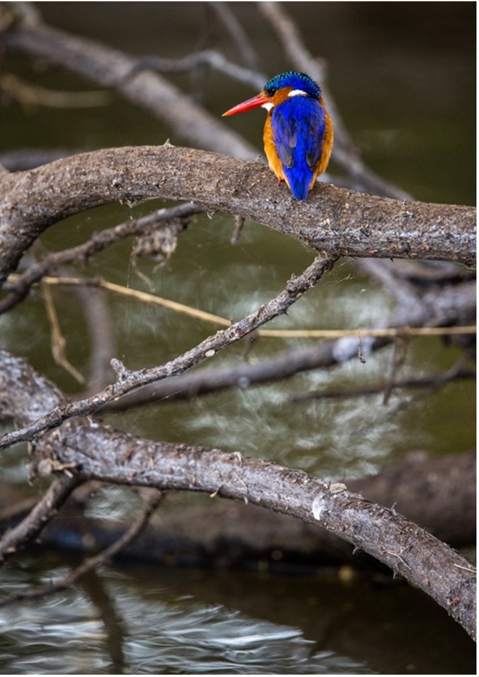 The best place to look for kingfishers, is of course during a boat cruise, and we find a kaleidoscope of kingfishers here – African pygmy, brown-hooded, giant, grey-headed, pied, striped, woodland, and this jewel in the crown, the malachite.