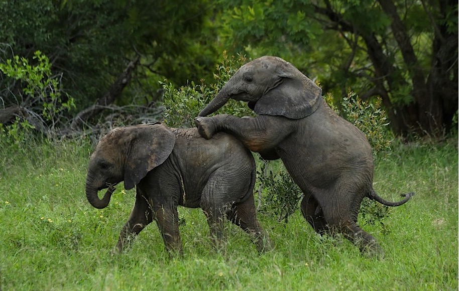 - The larger pachyderms have been getting stuck into the lush green oasis that now surrounds them. The warmer summer temperatures mean frequenting the mud wallows, waterholes and rivers for a regular cool off. The little ones keep themselves and each other preoccupied while the adults feast.