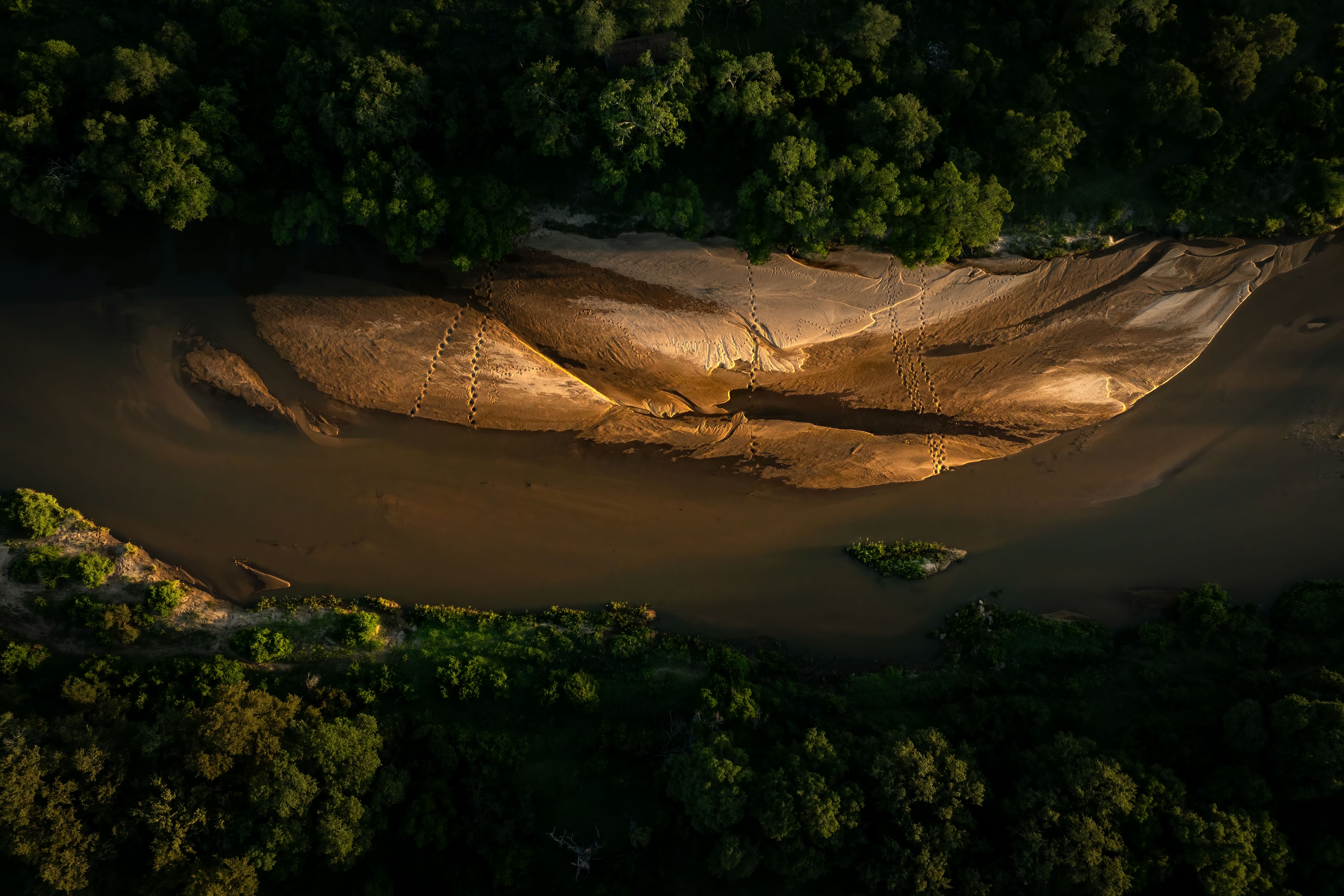 At first light, the Sand River is almost anonymous. A thin, patient line of water moving through the Sabi Sand, carrying the night away without ceremony. Fresh elephant tracks crease its banks, still sharp enough to tell you who crossed, and when. A fish eagle calls once upstream — not to announce dominance, just to confirm the morning has arrived.