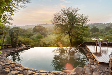 Die Singita Faru Faru Lodge liegt direkt an einem gut besuchten Wasserloch am Grumeti River im Herzen der Serengeti, was intensive Erlebnisse in der atemberaubenden Umgebung ermöglicht.